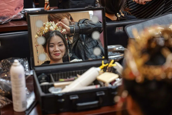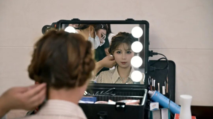 在镜前反复审视妆容,眼中满含期待